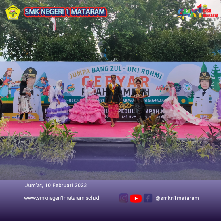 Mataram – Dinas Lingkungan Hidup NTB menggelar gebyar pilah sampah di lapangan Kantor Gubernur NTB, Jum’at, 10 Februari 2023. Giat ini dilaksanakan dalam rangka memperingati hari peduli sampah nasional. Ada yang berbeda dari Peringatan Hari Peduli Sampah Nasional (HPSN) di provinsi NTB tahun ini dibandingkan dengan tahun-tahun sebelumnya. Pemerintah NTB melalui Dinas Lingkungan Hidup NTB menghadirkan para praktisi yang telah berhasil mengubah sampah menjadi berkah. Salah satunya SMKN 1 Mataram.