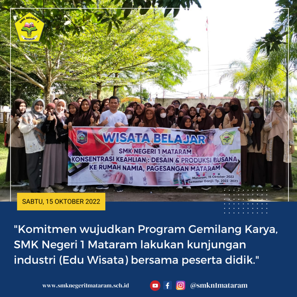 Komitmen wujudkan Program gemilang karya, SMK Negeri 1 Mataram lakukan kunjungan industri (Edu Wisata) bersama peserta didik.